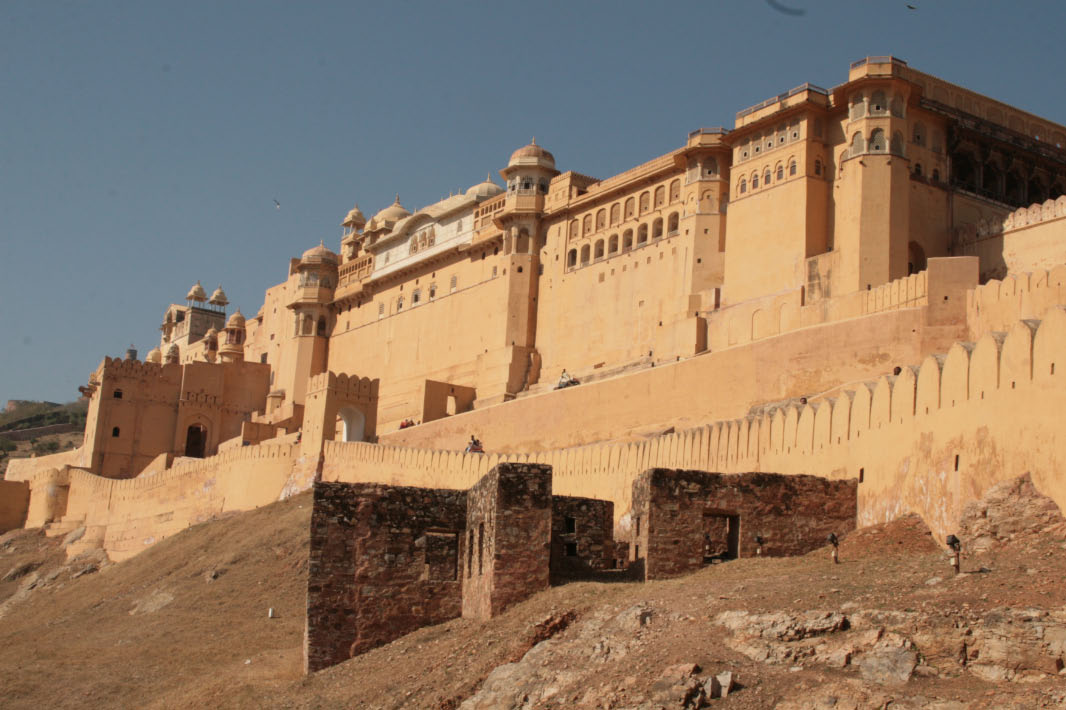 Mardi 4 novembre, ce matin, nous partons pour le fort d'Amber. En chemin, nous admirons le palais des vents et nous voyons nos premiers éléphants. Nous continuons jusqu'au fort où nous terminons l'approche à dos d'éléphant. Ce n'est pas calme et nous sommes secoués sur cet éléphant qui fait la course pour dépasser ses congénéres.